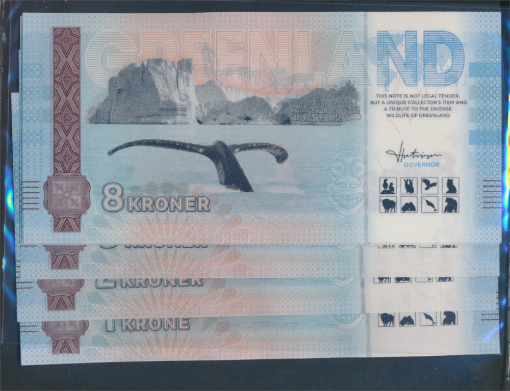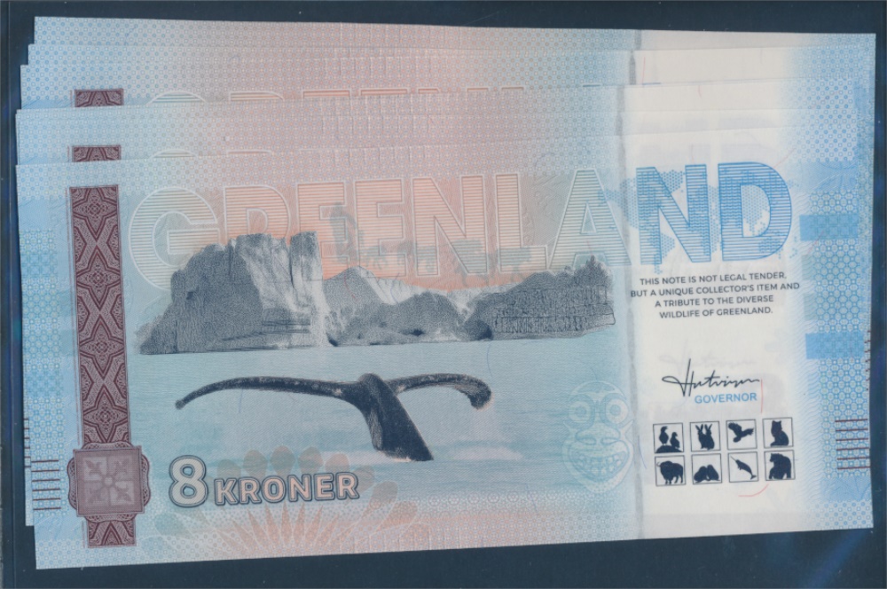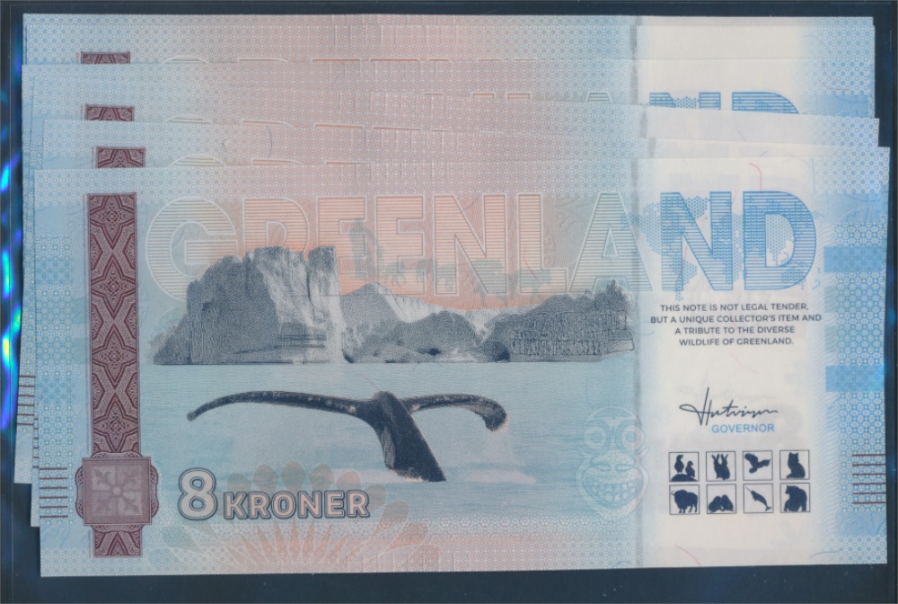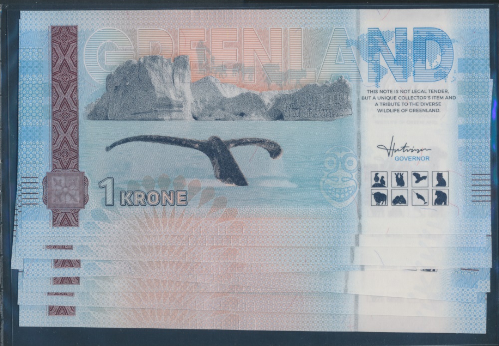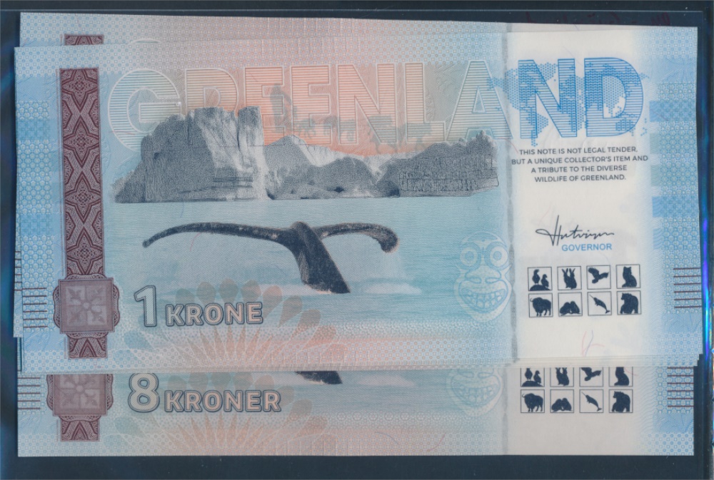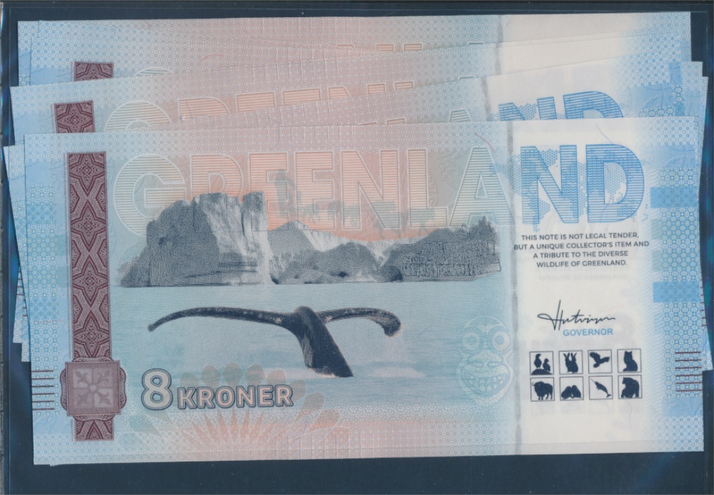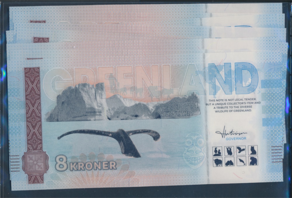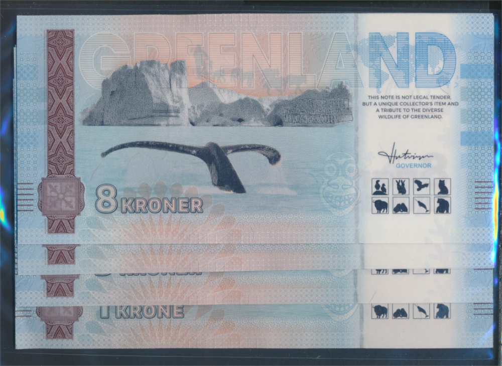Dänemark - Grönland 1 Krone bis 8 Kroner Souvenirschein Grönland bankfrisch 2025 Tiere Grönlands - 8er Set
