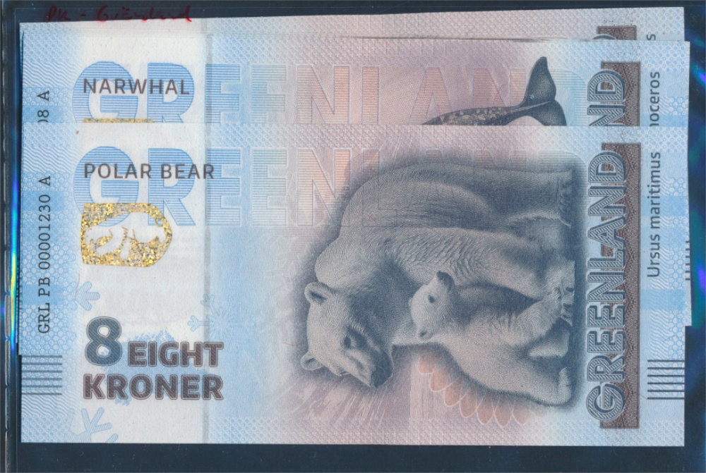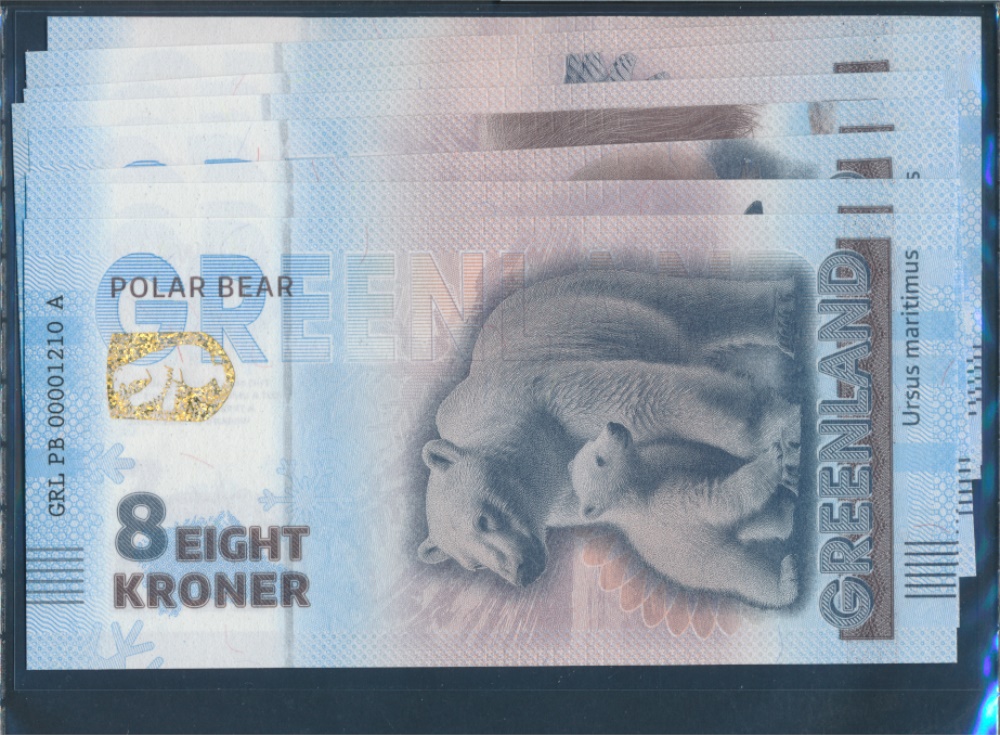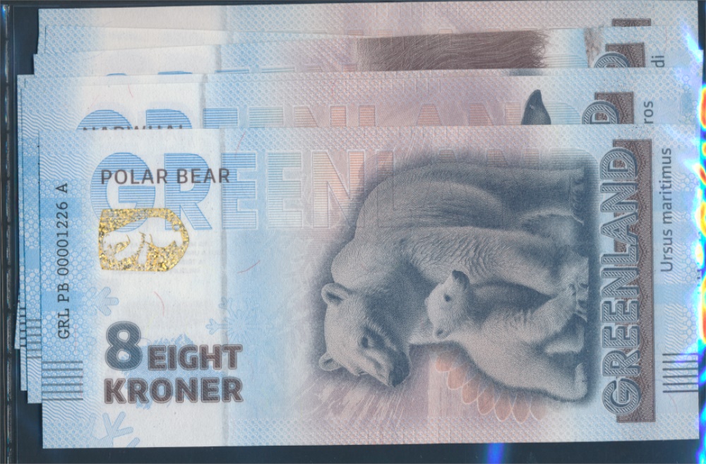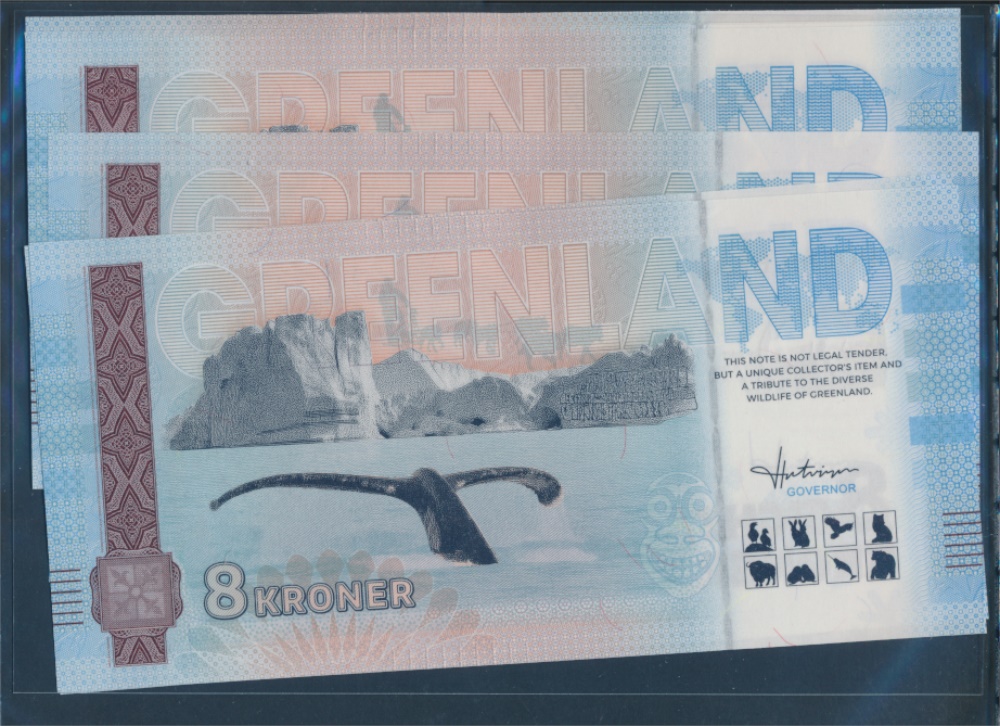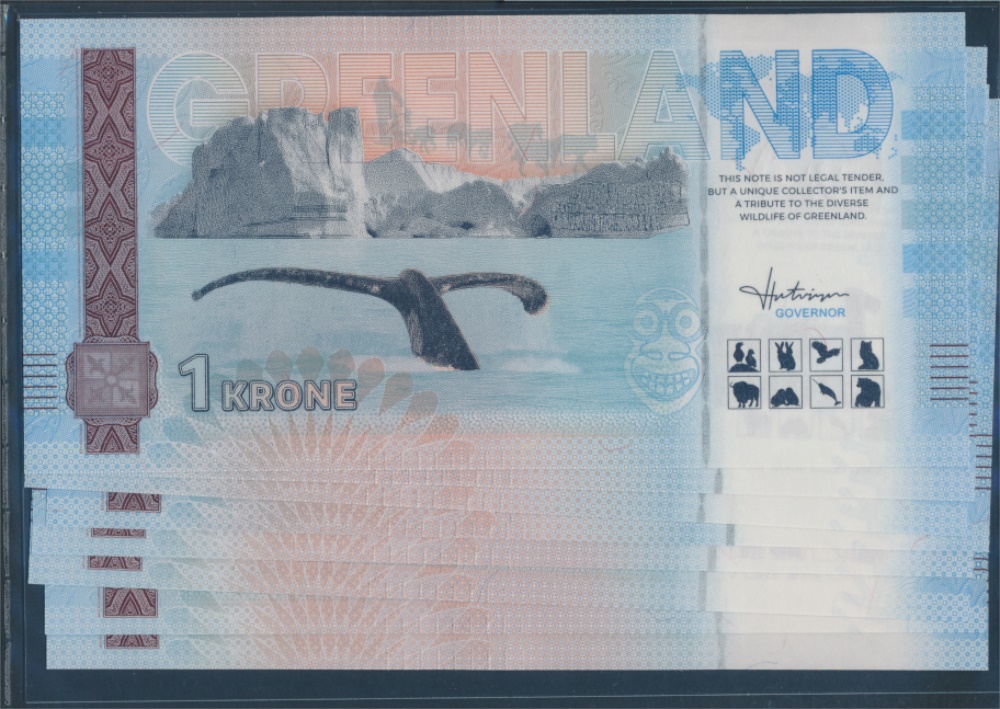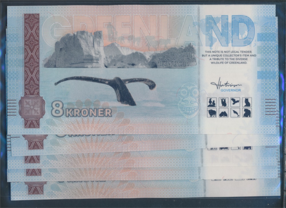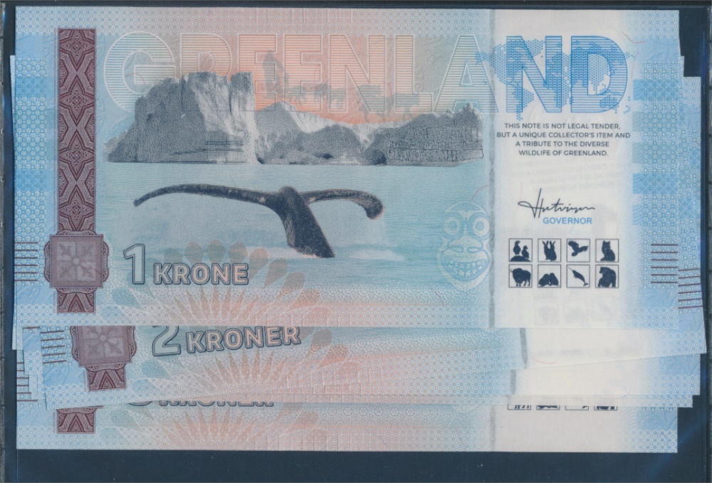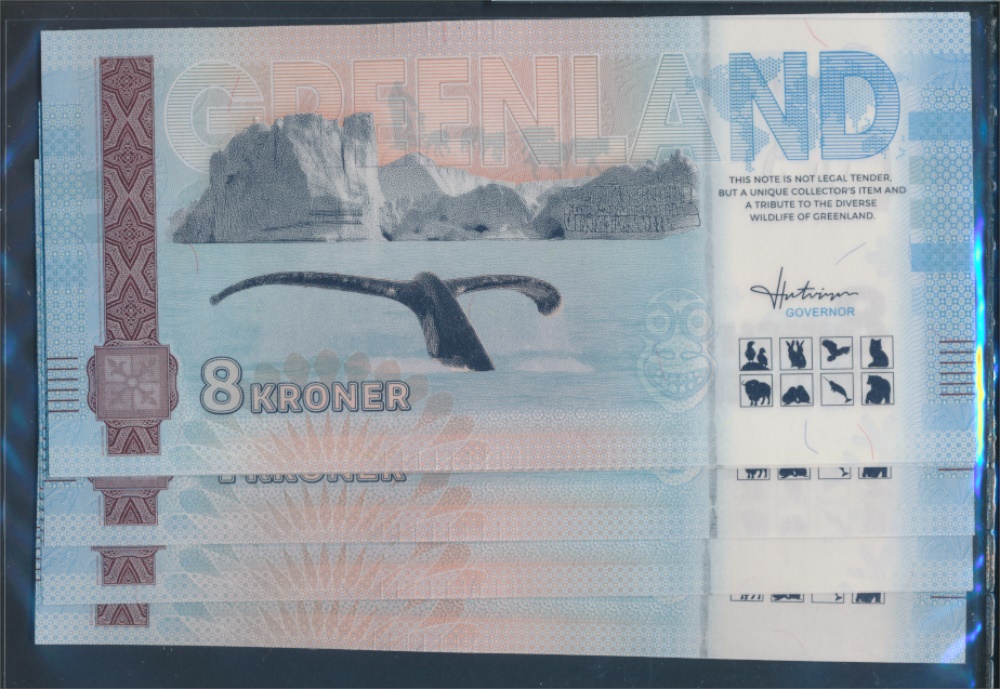 Dänemark - Grönland 1 Krone bis 8 Kroner Souvenirschein Grönland bankfrisch 2025 Tiere Grönlands - 8er Set