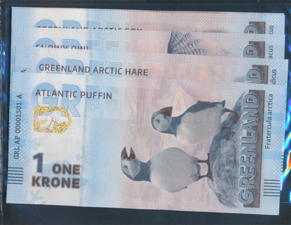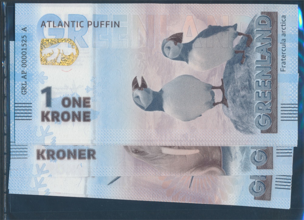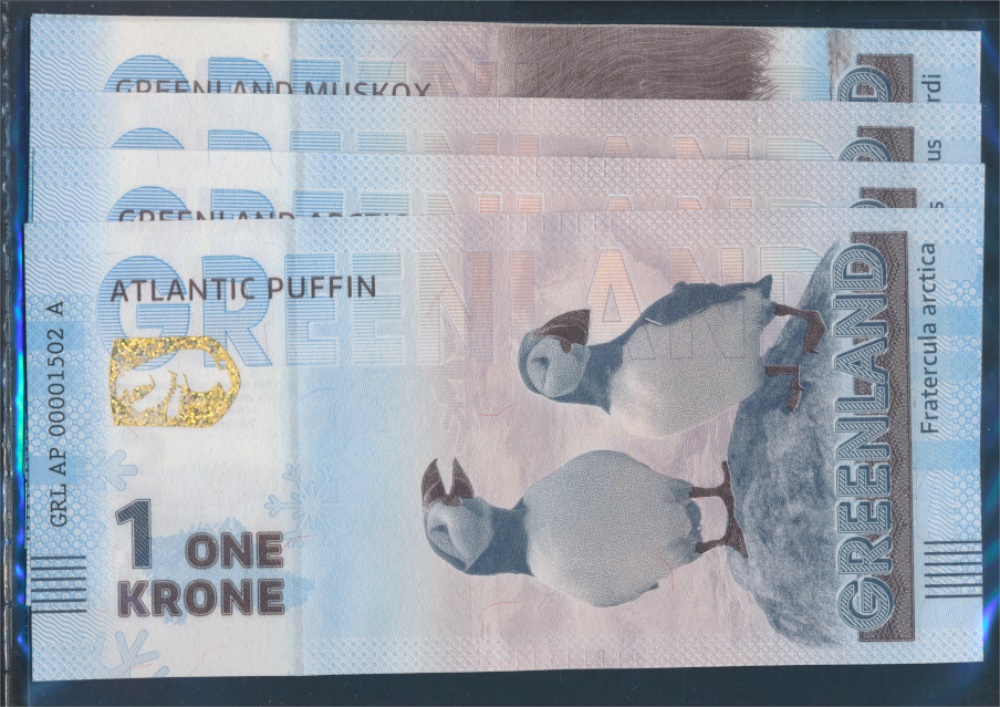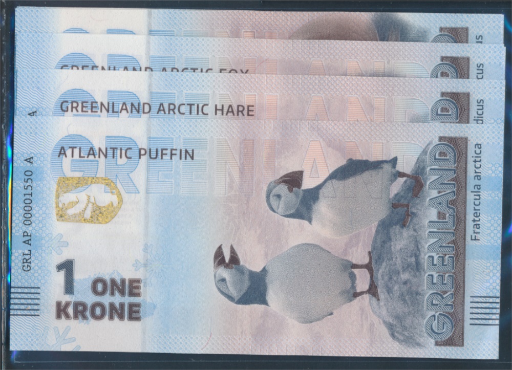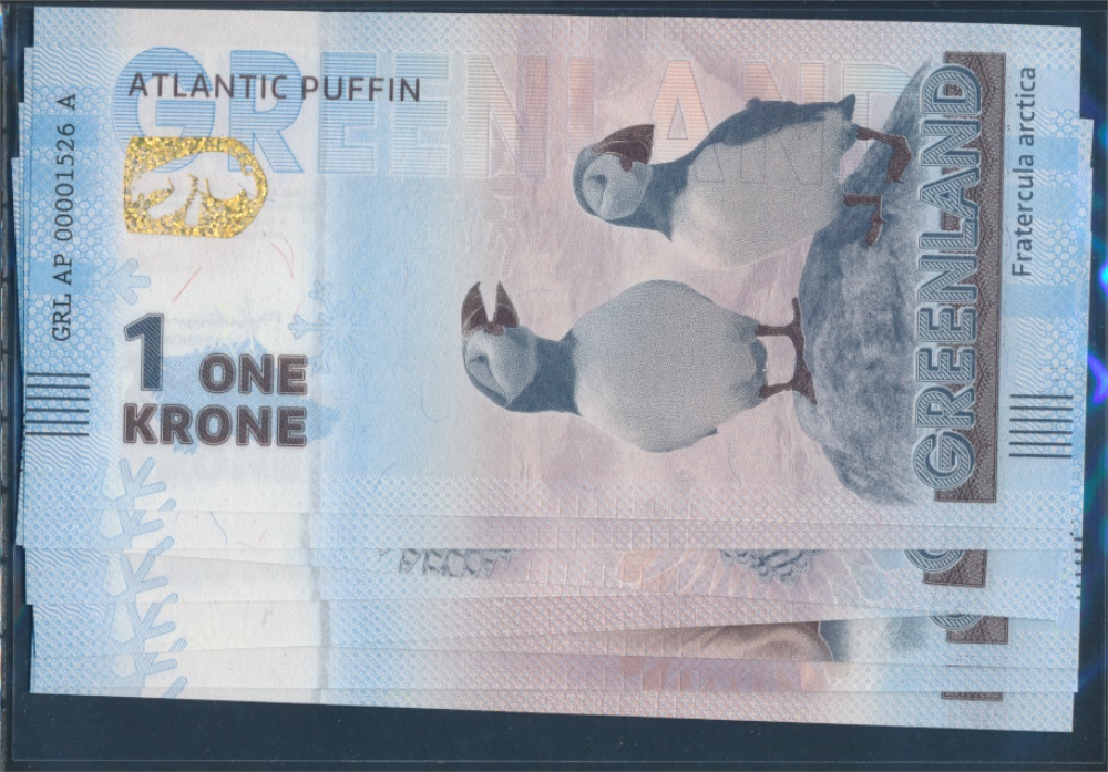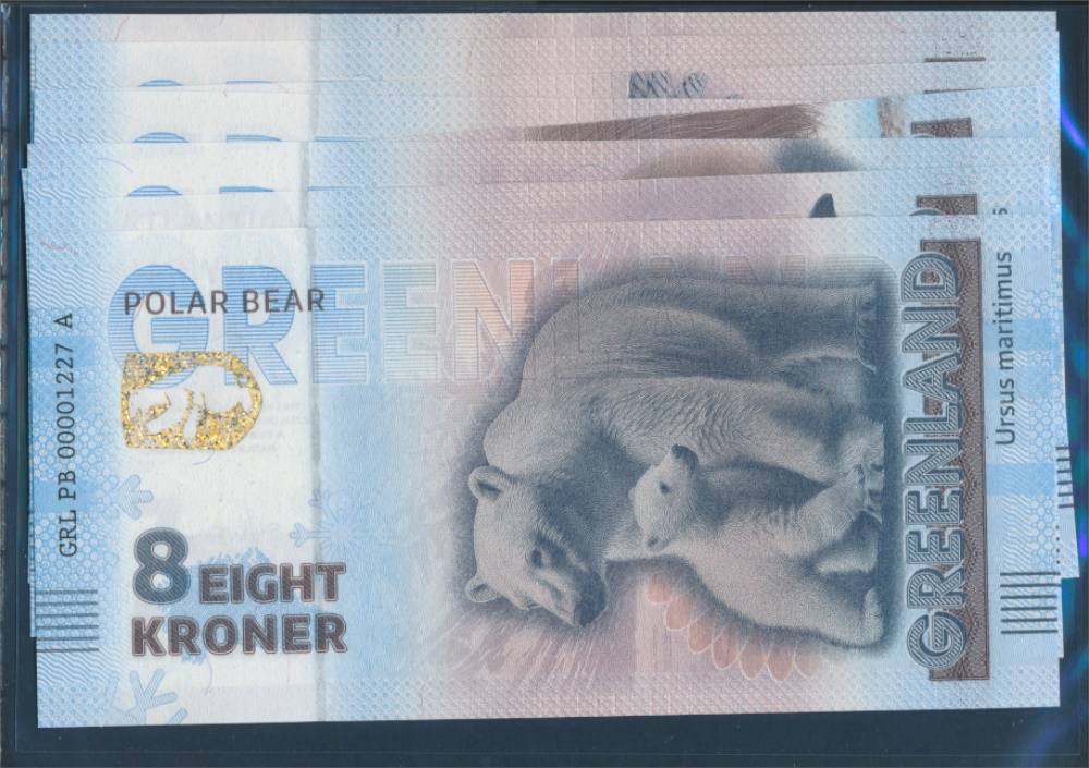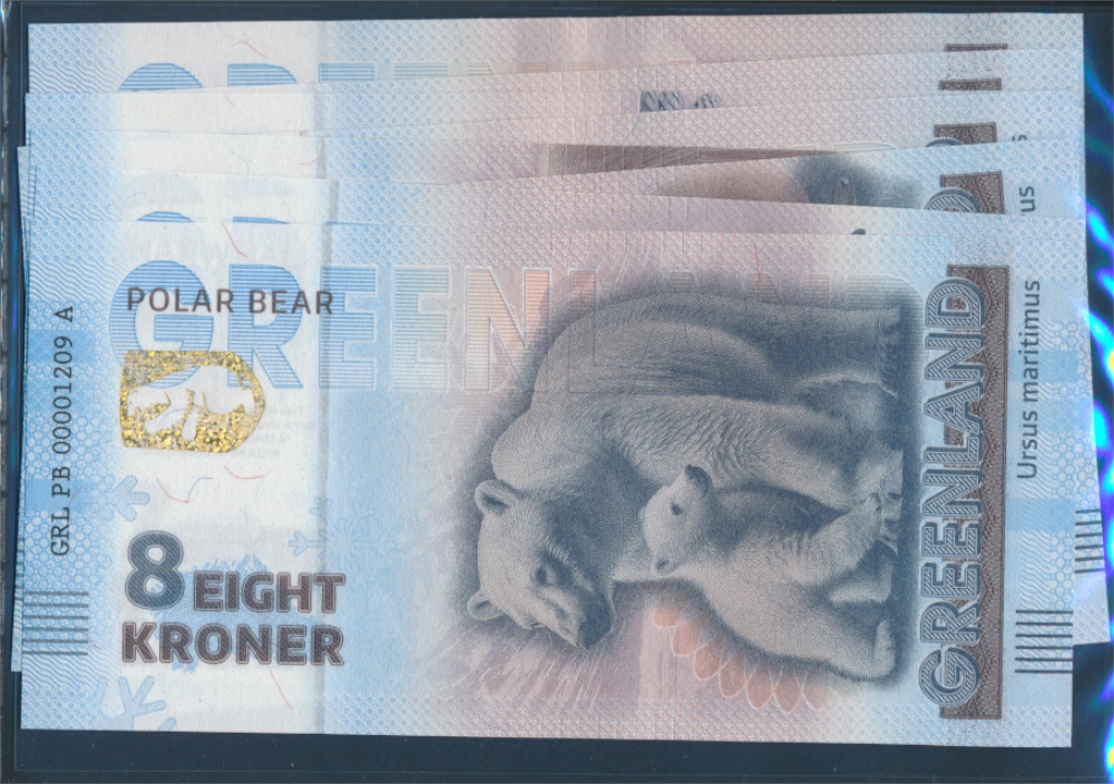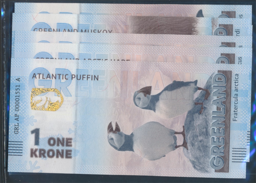 Dänemark - Grönland 1 Krone bis 8 Kroner Souvenirschein Grönland bankfrisch 2025 Tiere Grönlands - 8er Set