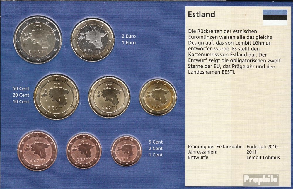 Estonia 2011 Stgl./unzirkuliert Kursmünzensatz 2011 Euro-first edition