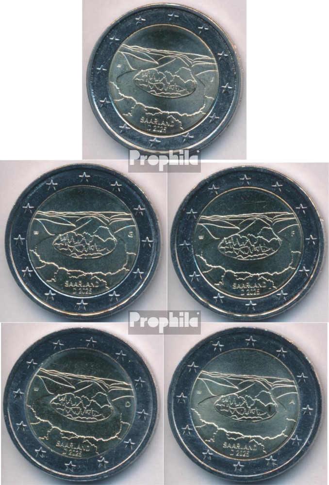 BRD (BR.Deutschland) 2025 A,D,F,G,J Stgl./unzirkuliert Auflage: 2025 5x2 Euro Saarschleife